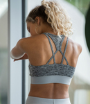 92% polyester/8% elastane. DynamicCool™ responsive blended fabric. Scoop neckline. Double layer front for extra support. Cross strap detail at the back. Printable elasticated band.