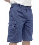 Part elasticated waistband with belt loops. D-ring. Zip fly with brass button over. Two side pockets. Rear patch pockets - one with a flap. Right leg cargo pocket with pen pocket.