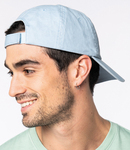 100% organic cotton. Pre washed. 6 panel. Pre-curved peak. Tear release size adjuster. Due to the washing process each garment is unique.