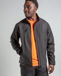 Standard fit, Full front zip, Zipped chest and side pockets, Printable three layer bonded softshell fabric, Chin guard, Internal storm flap, Adjustable shockcord hem, Windproof and showerproof