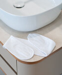 Soft cotton rich headband with adjustable hook and loop fastening.